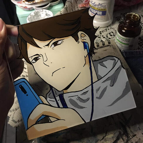 accepting commissions for glass paintings, anime case paitntings and painted tote bags.